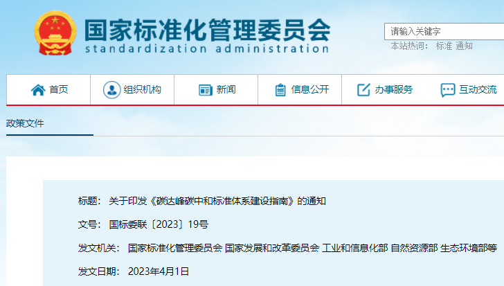 《碳达峰碳中和标准体系建设指南》已经2023年2月6日国务院标准化协调推进部际联席会议全体会议通过,现印发给你们,请结合实际认真贯彻落实。