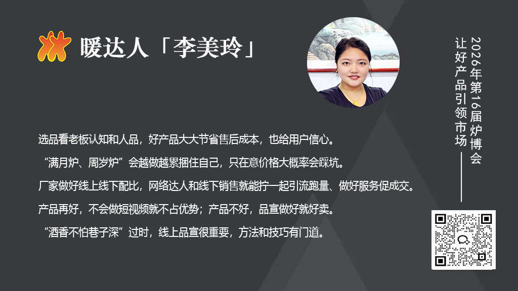 成为“暖达人”,您将有机会通过专题访谈分享专业见解,参与短视频内容共创,并基于实际应用场景贡献产品创新思路。作为回报,您将获得炉具网授予的官方荣誉、全媒体矩阵的宣传曝光、参与年度评奖赢取奖金的机会,以及以特邀嘉宾身份出席第16届炉博会、链接核心行业资源的宝贵资格。如果您对行业充满热情并乐于分享,请添加微信报名:18514223594