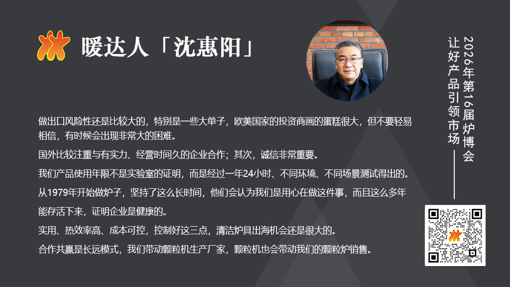 前几年你们也探讨过做国内市场,在炉博会上也展示过,现在柴炉、颗粒炉已经成为线上网红产品。你如何看待国内市场?未来会有什么布局吗?